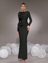 Modphy Schwarzes Kleid mit weiten Ärmeln, rundem Ausschnitt, sexy figurbetonter Silhouette und langem Bandage-Design, elegant für Galas, Festivals und formelle Abendveranstaltungen