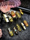 10 Stücke handgemachtes komplettes Nagel-Set, mit kurzen Sarg-förmigen champagnerfarbenen Katzenauge-Nägeln mit Metallfransenzspitzen, 3D Strass-Dekor Frühlings- und Sommer-Nagel-Set, geeignet für Mädchen zum täglichen Tragen und für Veranstaltungen, Themen-Neujahrs- und Partys sowie andere Anlässe. Inklusive 1 Mini-Nagelfeile und 1 doppelseitiges Klebe-Etikett.