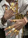 15/20 Stücke modischer, eleganter, vintage-inspirierter Stapelring-Set, mit geometrischen, floralen, Perlen-Imitat, Edelstein-Imitat, metallischen, strukturierten Designs, geeignet für Feiertage, Partys, Geschenke, Alltagsmode