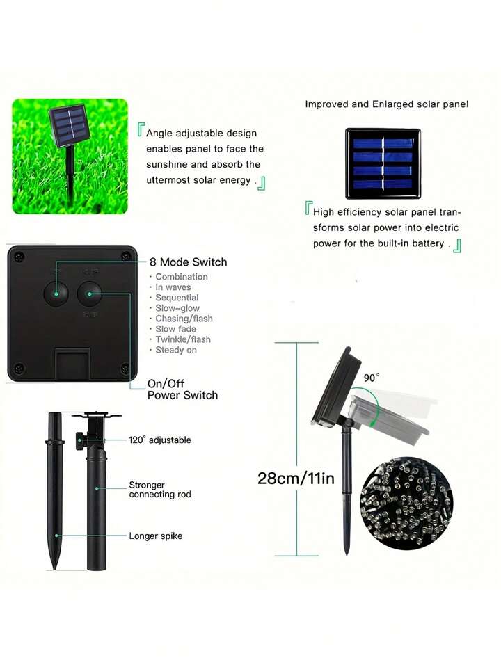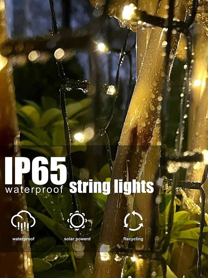 1pc 32m/300led Solar Powered Outdoor Decorative Light String With 8 Modes, Waterproof, For Christmas And New Year Decoration Christmas Decorations