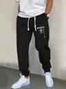 Plus Size Men's Black Jogger Pants, Brand Printed Sweatpants, Casual Street Style