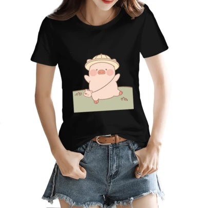 The Women's Patterned T-Shirt Is A Short Sleeved T-Shirt With A Theme Of Giant Beast Band Skull  . It Is A 170g Cotton Soft And Comfortable Casual Top, Suitable For Daily Wear, Weekend Outings, Friend Gatherings, And Playful Y2K Aesthetics. It Is Fashionable, Loose, Breathable, And Easy To Match With Wardrobe Essentials - Black - View 1