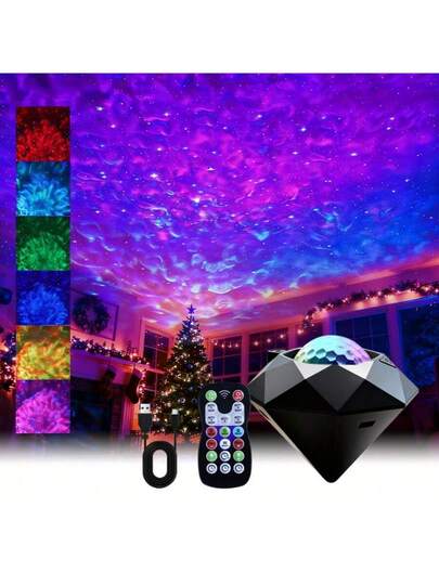 Wave Projection Lamp, Multiple Modes, Remote Control, Home Decor Ambient Night Light, RGB Lighting Effects, Suitable For Bedroom, Party, Game Room, Living Room, Bar Decoration, USB Powered - Black - View 1
