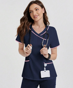 PopScrub Cute Cartoon Santa Christmas Print V-Neck Short Sleeve Pocket Nurse/Doctor Top, Scrub Uniform  Cute Santa Claus Delivering Gifts Heart-Shaped Balloon Nurse Uniform Top Christmas Women Clothes