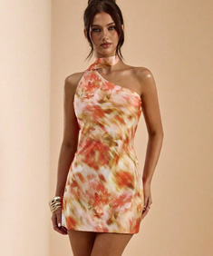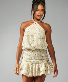 Soleia Women's Palm Tree Print Halter Neck Cover Up Dress, Holiday Wear, Country Concert Outfit