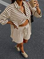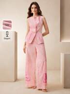 Retro-Style Floral Print Two Pieces Suit, Comfortable And Versatile, Featuring Collared Wide-Leg Pants; Perfect For Airport Wear, Island Vacations, Or Everyday Shopping.