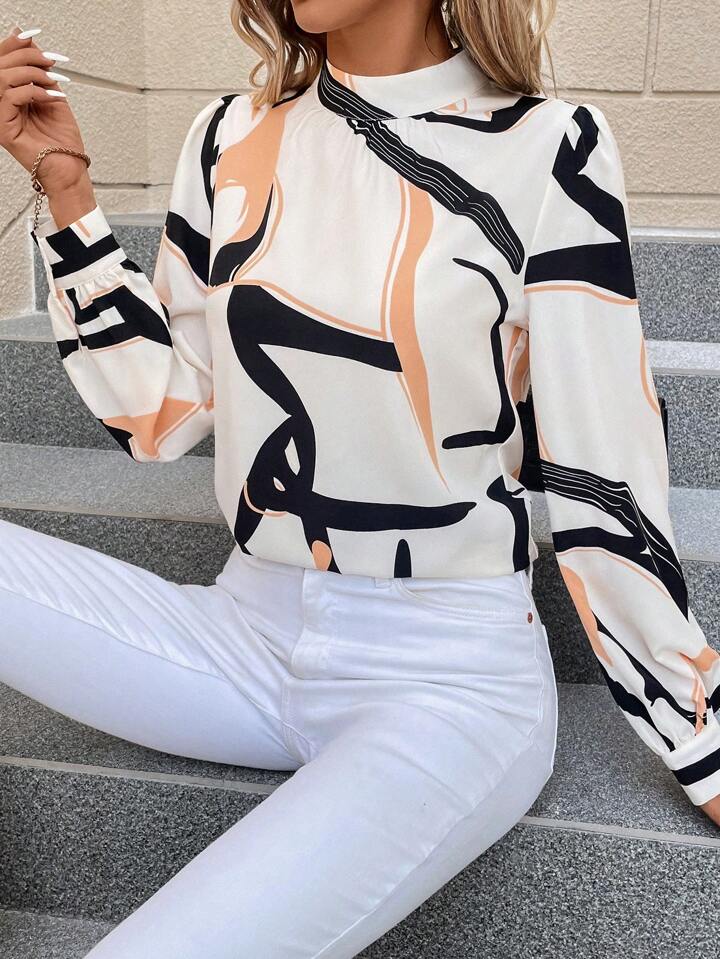 SHEIN Clasi Women's Color Block Stand Collar Long Sleeve Shirt