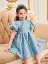 Balabala Girls' Embroidered Hanfu Dress, Modern Chinese-Style Summer Outfit, 2025