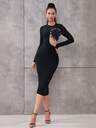 Modphy Black Flare Sleeve Round Neck Sexy Bodycon Long Bandage Dress, Elegant For Gala, Festival Party, Women's Formal Evening Gown