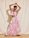 VALERIA GÓMEZ Designer Floral Print Sheer Mesh Mock Neck Long Sleeve Sexy Bodysuit, Festival, Rave Outfits Festival Petite