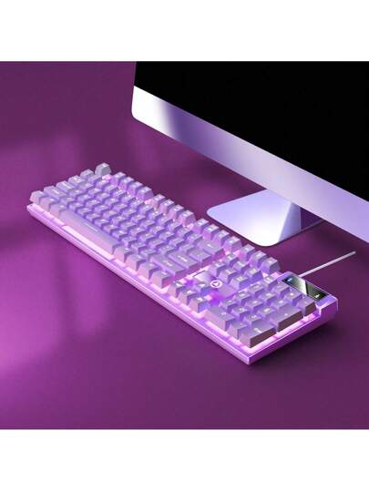 Teclado semimecânico para jogos , Luminoso De Correspondência De Cores , De Computador Com Fio , Acessórios Para De Mesa , Luz De Fundo - Roxo(Luz de fundo branca) - Visão 1