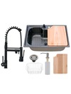 Pia Gourmet Cozinha 75x45cm Pia Multifuncional Aço Escovado Inox 304 Cor Preto Com + Torneira Monocomando Flexível Cascata Purificador Lavador De Copos Tábua Cesto Dispenser 300ml WINDA