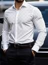 Manfinity Mode Camisa social masculina de manga longa com gola em pé, de cor sólida e botões, camisa formal masculina, camisa de cor sólida masculina. Adequada para uso diário, ir ao trabalho, sair, festas. Pode ser combinada com calças ou ternos para comparecer a festas, casamentos, lua de mel. Pode ser dada de presente para filhos, maridos, namorados, pais, no outono.