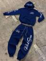 Manfinity Roghcode Moletom Masculino Gráfico de Gola Careca, Manga Raglan, Caimento Solto, Streetwear Esportivo Azul dos Anos 90, Malha Streetwear, Outono
