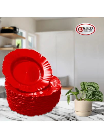 Kit 100 Pratos Redondos Fundos Refeição Churrasco Festa Pétala Acrílico - Vermelho - Visão 1