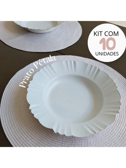 Kit com 10 Pratos Pétala de Plástico Fundo para Churrasco Aniversário Festas Bege, Vermelho ou Preto - Branco - Visão 1