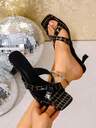 Sandálias de Salto Alto Grosso com Bico Aberto e Recortes Elegantes, Novidade de Verão para Mulheres Plus Size