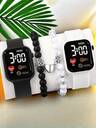 Conjunto de 6 Peças: 1 Relógio Digital Eletrônico Feminino e 5 Acessórios de Joias em Formato de Coração, incluindo Anel, Colar, Pulseira e Brincos, adequado como Presente do Dia dos Namorados, Presente de Natal, Presente de Formatura ou para Uso Escolar.