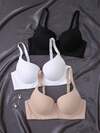 3 Peças Conjunto de Sutiãs Simples e Casuais Sem Arame, Alça de Espaguete, Cor Sólida