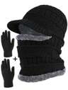 Conjunto de 3 peças: Gorro de Malha de Inverno, Cachecol Aquecedor de Pescoço e Luvas Touch Screen. Gorro de Caveira Forrado Termicamente para Homens, Gorro de Malha de Inverno Grosso e Sólido, Forrado Termicamente, Gorros Quentes para Esqui no Outono