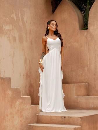 Vestido Fminino Longo Gola V com Lastéx Confortável Elegante Tendencia Final de Ano Basico Classico Minimalista Sexy