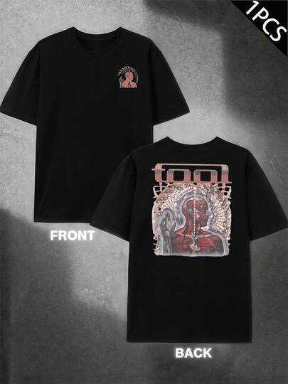 Anatomy Art Print Tee , Men's Double-Sided Printed Fashionable Casual Crew Neck 220gsm Pure Cotton T-Shirt(1 PC) - Black - View 1