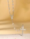1pc Virgin Mary Cross Pendant Beads Chain Necklace,Crystal Beads Catholic Necklace Cross Pendant Virgin Mary Necklace Colorful Cross Pendant Necklace