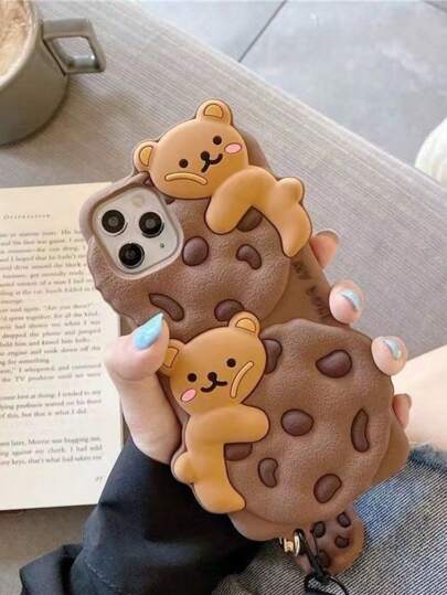 Cute Cartoon Cookie Teddy Bear With Lanyard Holder, Stripe Clothe Teddy, Teddy Bow, Birthday Hat, Tulip Teddy Phone Case Compatible With APPLE 13/14/11/12/16/15 Pro Max Waterproof Shockproof Anti-Fall Scratch Resistant - Multicolor - View 6
