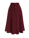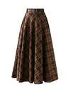 EARO Women's Elegant Long Plaid Skirt, Front Button Design, High Waist A-Line Silhouette, Non-Stretch Fabric