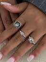 1pc Stylish & Versatile Double-Layered Forest Green Cubic Zirconia Ring With Unique Design