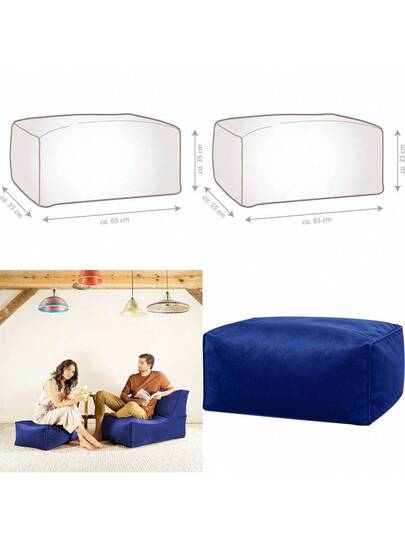 Gouchee Home Roll Veet Rectangular Pouf Ottoman Indigo Blue - Multi-Function Veet Lounger Foot Stool With Filling - Floor Pouf For Living Room Bedroom - Footrest For Indoor - BlueIndigo - View 2