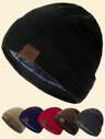 JZML 1pc Men's Loose Letter Decoration Knitted Beanie Hat Fall Outfit
