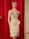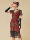 Flapper Dresses 1920s, Great Gatsby Dresses Roaring 20s For Women, Sheer Beaded Sleeves Costume