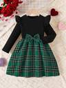 Young Girls Valentine's Day Bow Decor Long Sleeve Round Neck Dress