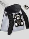 Spring/Fall New Arrival Men's Jacket & Unique Print European & American Style Retro & Cute Design Featuring Sunglasses Bear Pattern Zipper Pockets Travel & Vacation Outdoor & Camping Men's Outerwear