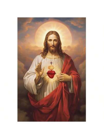 Sacred Heart Of Jesus Canvas Wall Art - Waterproof Religious Christian Wall Decor For Bedroom, Church - Catholic Bible Inspired Frameless Poster For Home Decoration - 12x16 Inches - Multicolor - View 1