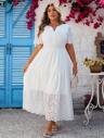 Simplee Plus Size Women Elegant Vintage Lace A-Line Dress, Long Sleeve Waist Cinched, Suitable For Wedding, Party, Birthday