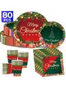 [New Arrivals For Christmas]Christmas Themed 20/40/60/80/100 Disposable Tableware Set, Including 7-Inch Paper Plates, 9-Inch Cardboard, 9-Ounce Cups, Napkins, Suitable For Daily Gatherings, Birthday Parties, Bridal Showers, Baby Showers, Clubs, Weddings, Tea Parties