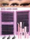 640pcs Cluster False Eyelashes, Thick Curly Eyelash Extension Kit, D-Curl, 8-16mm Mixed Length, DIY Eyelash Extension Set, DIY Lower Lash Extension Tutorial, Fluffy Soft Individual Lashes, Create Voluminous Natural Y2K Butterfly Makeup Effect, Easy DIY Long-Lasting Eyelash Glue, DIY Remover, DIY Eyelash Tweezers (20D+30D+40D+50D Lower Lashes)