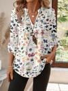 EMERY ROSE Women's 3/4 Sleeve V-Neck Ditsy Floral Blouse, Suitable For Outdoor Wear, Fall/Winter Chic Blouses For Women