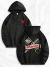 VUKOUK Men's Printed Hoodie Hooded Sweatshirt, Fashionable Printed Street Men's Hooded Sweatshirt, Personalized Hip-Hop Style Pullover, Multifunctional Drawstring Pocket Design, Autumn And Winter Clothing, Suitable For Casual Outdoor And Holiday Gift Giving Mechanic