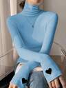 Women's Long Sleeve Fitted Heart Embroidery Pattern Turtleneck Top, Spring/Summer