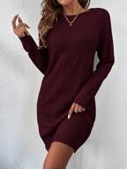 SHEIN Belle Burgundy Red Square Neck Flared Velvet Dress