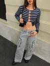 Franclia Leichte Damen V-Ausschnitt Kurzarm Kontrast Rippstrick Strickjacke, Lässig Alltags Tragen, Sommer