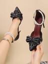 Spitze Zehensandalen mit Strass-Absatz und Schleife, transparentem Riemen im französischen Stil, Neu Frühling/Sommer 2024, Elegant, Damen Pumps, Elegant, Party Outfits