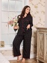 Valentinstag französischer romantischer Blumen-Hase-Muster Spitze Patchwork Schleife Dekor Glockenärmel Große Größen Frauen Pyjama Set