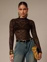 Silquee Damen Bodysuit mit Blumen-Spitze, Stehkragen und langen Ärmeln, sexy