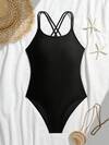 SHEIN Bikini-Set für Teenager-Mädchen in einfarbigem, minimalistischem Navy-Blau & Weiß Kontrastfarben, Spaghettiträger, lässiger Strandurlaubs-Outfit, Sommer Mode Neuankömmling