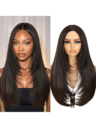 U-Teil Yaki Perücke Körperwelle Synthetische Perücken für Frauen schwarzes Haar V-Teil Perücken Upgrade Glueless Vollkopf Clip-In Halb Perücken für V-förmige Perücken ohne Haarausfall dünner Teil Perücke