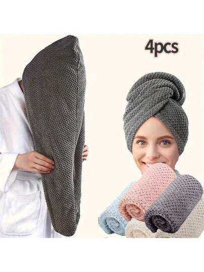 1/2/3/4 Toalla de fibra ultra fina, gorro de lana suave, toalla de unicolor simple para el baño, toalla envolvente para el cabello muy absorbente para cabello rizado, toalla anti encrespamiento para cabello mojado, suministros de baño, accesorios de baño, gorro de baño para viajes al aire libre - Multicolor - Añade 4
